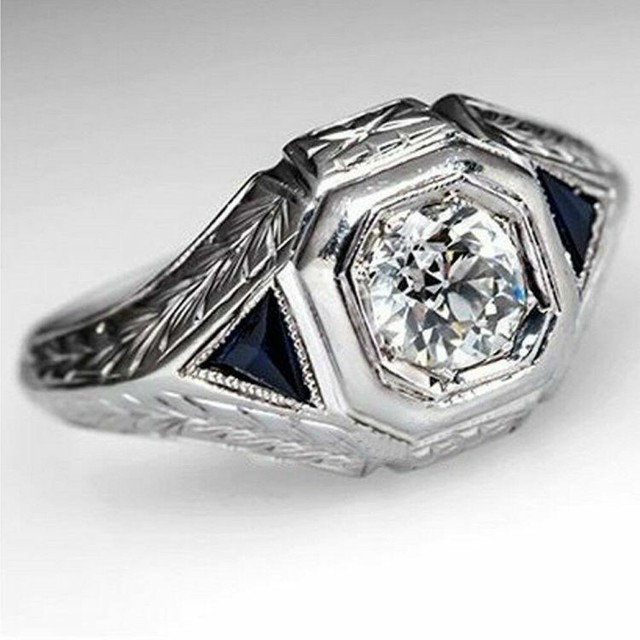 Art deco antique 1.00ct white round diamond men's engagement ring in. Antique men's art deco 18k white gold diamond and sapphire ring, 11.5. Mens art deco diamond ring 1.35 tcw egyptian engraved